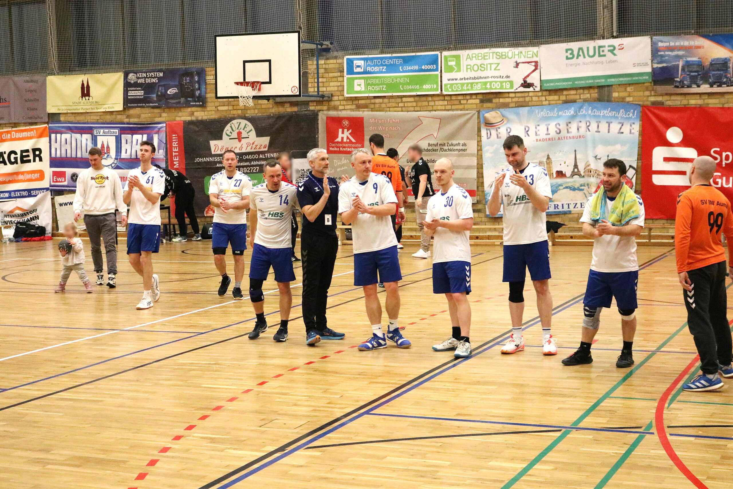 Nach Wiederbeginn entwickelte sich eine ausgeglichene Partie. Dennoch merkte man den Blau-Weißen an, dass sie sich nicht mit einer Niederlage abfinden wollten. Mit toller Moral hielt man die Begegnung offen, kam jedoch in einer Überzahlsituation nicht zum Torerfolg. So gelang es den Hausherren beim 18:12 sogar, auf plus sechs zu stellen. Bis Mitte der zweiten Hälfte verkürzten die aufopferungsvoll kämpfenden Aumaer beim 21:17 wieder etwas. Leider scheiterte man in der Folgezeit beim bereits dritten Strafwurf. Dennoch war die Partie noch nicht entschieden, die Aumaer agierten auf Augenhöhe. Angefeuert von der lautstarken Unterstützung der Fans gelang Oscar Weise das 24:22, das neue Hoffnung ins Team brachte. Reichlich vier Minuten vor Schluss stellten die Skatstädter beim 27:23 jedoch wieder auf vier Tore. Dennoch wurde es noch einmal sehr laut in der Altenburger Halle. Starke Paraden des Aumaer Torwarts schufen die Voraussetzung für drei Treffer binnen zwei Minuten und den eigentlich nicht mehr für möglich gehaltenen 27:26-Anschlusstreffer. Es folgte der Ballgewinn für die Aumaer, doch etwas überhastet gelang der Ausgleich nicht. Die Hausherren waren nun nur noch bestrebt, Zeit von der Uhr zu nehmen, scheiterten jedoch am Aumaer Torwart, sodass sich erneut die Chance zum Ausgleich bot, die leider wiederum nicht genutzt wurde. Nach einer Auszeit scheiterten auch die Altenburger erneut, und die Aumaer starteten den Konter. Dabei kostete eine erneute Fehlentscheidung den Blau-Weißen eine gute Torchance: Als Tim Seidel regelrecht abgeräumt wurde, blieb nicht nur die fällige Siebenmeterentscheidung aus, auch die Zeit wurde unnötig lange weiterlaufen gelassen. Dennoch blieb der Ballbesitz bei den Aumaern, für die es aber nur noch zu einem direkten Freiwurf reichte. Dieser verfehlte das gegnerische Tor knapp, und man musste eine unglückliche Niederlage hinnehmen. Dennoch wurden die Akteure von den mitgereisten Fans für diese starke Vorstellung gebührend gefeiert.