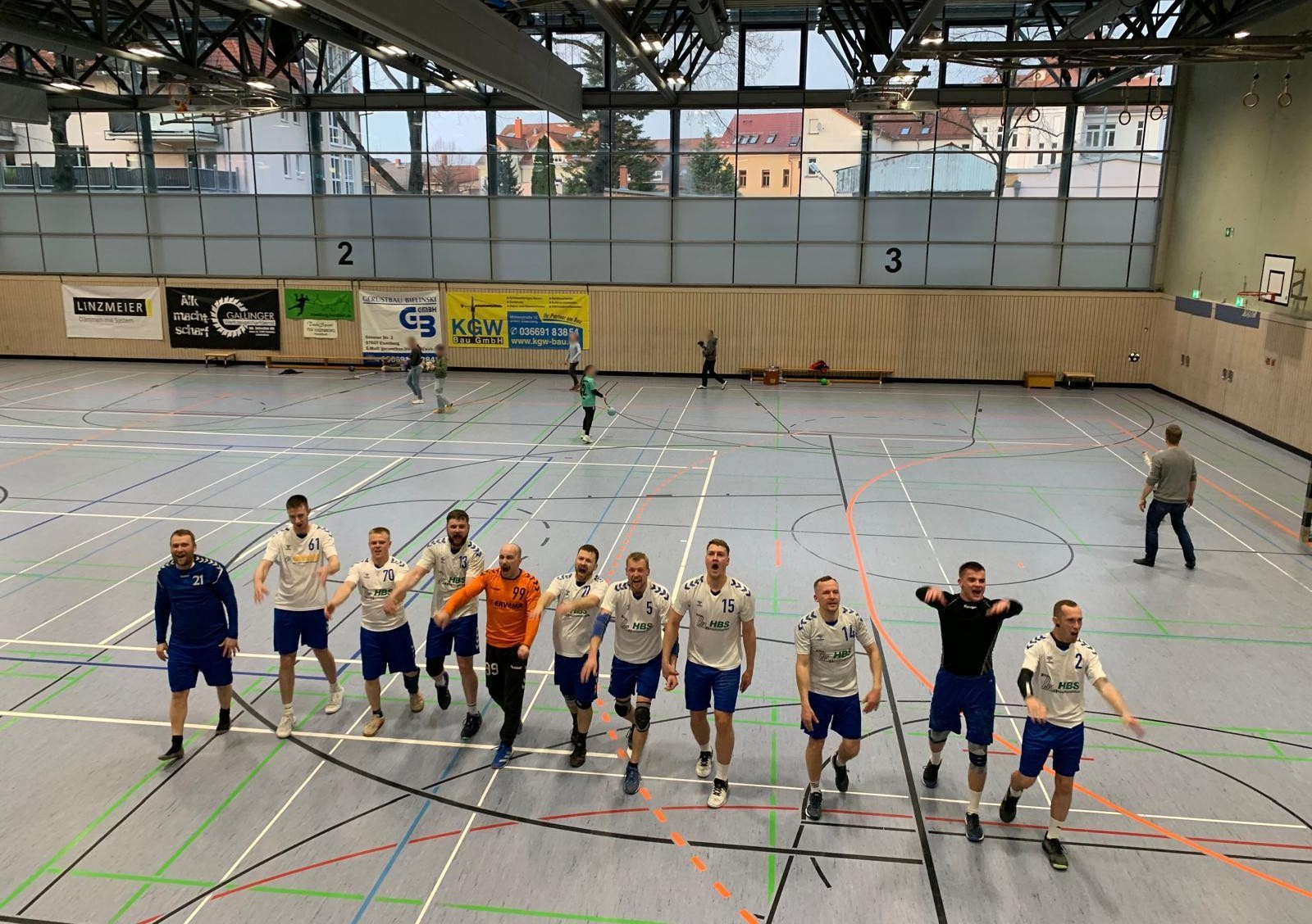 Auch in der zweiten Hälfte blieb das Duell zunächst ausgeglichen. Die Gäste setzten vermehrt auf das Eins-gegen-Eins, während die Aumaer Abwehr zunehmend stabiler stand. Dennoch blieb es beim 15:15 weiterhin spannend. Doch dann kam der Umschwung: Die Blau-Weißen erzwangen Ballverluste und erspielten sich beim 15:18 erstmals eine Drei-Tore-Führung. Eisenberg gab sich jedoch nicht geschlagen und kämpfte sich beim 17:18 wieder heran, ehe sie Mitte der zweiten Hälfte sogar zum 19:19 ausglichen. Doch die starke Defensive der Aumaer zeigte Wirkung. Lukas Kraske brachte sein Team erneut in Front und stellte auf 20:23. Trotz einer weiterhin engen Partie blieb Auma konzentriert. Beim Stand von 22:24 sieben Minuten vor Schluss war noch nichts entschieden. Doch dann folgte die entscheidende Phase: Ein 3:0-Lauf brachte die Gäste auf 22:27 und sorgte für die Vorentscheidung. Am Ende feierten die Blau-Weißen einen verdienten 23:29-Auswärtserfolg und ließen sich von ihren zahlreich mitgereisten Fans gebührend feiern.