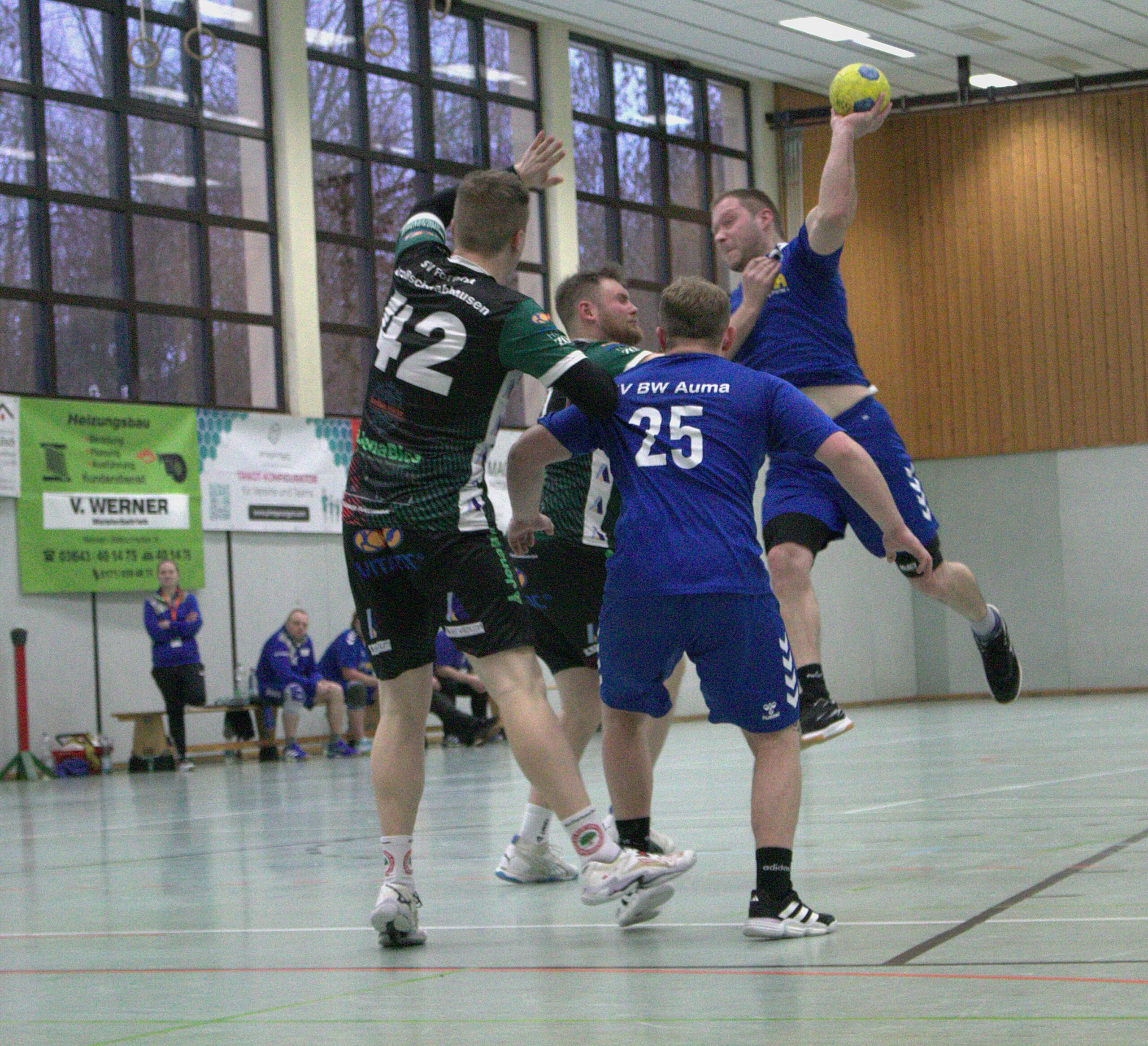 Am Samstag reiste die zweite Männermannschaft des SV Blau-Weiß Auma in die Josef-Baumgartner-Sporthalle nach Großschwabhausen. Mit Fortuna Großschwabhausen II wartete ein unangenehmer Gegner, der den Blau-Weißen von Beginn an alles abverlangte.
